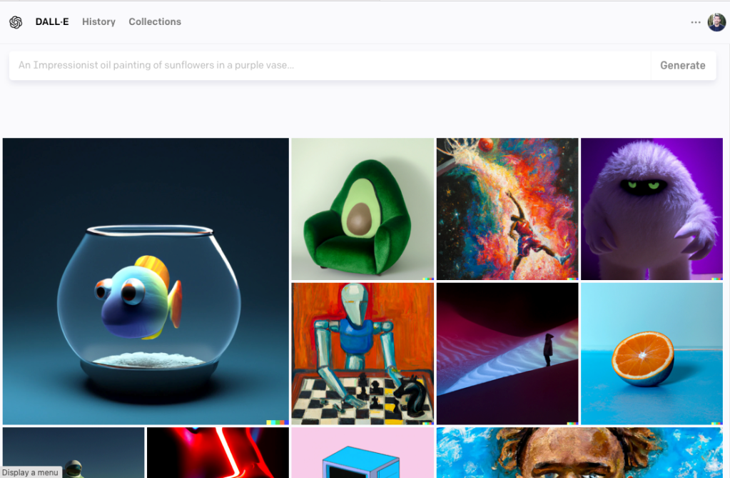 Dall-E 2 works with the use of a diffusion model that integrates data from the CLIP model to help generate a higher quality image. Dall-E 2 generate a set of four images at the cost of 1-credit.