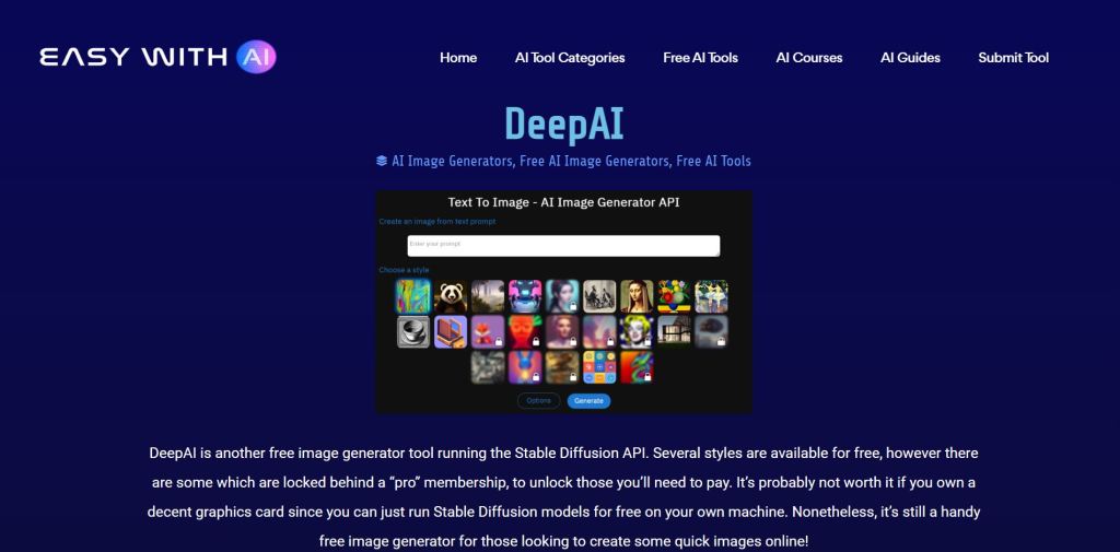 DeepAI is an open-source software that stands as a gateway to a realm of creative expression. With a myriad of tools at your disposal, you can effortlessly fashion an array of stunning and realistic images. The platform empowers you to modify multiple details within each image, fostering an environment of intricate customization. It offers various tools that can be used to create realistic images. You can create captivating cartoons with the innovative CartoonGAN feature. Some of the other tools offered by DeepAI include StyleGAN and BigGAN, which can also create realistic images.