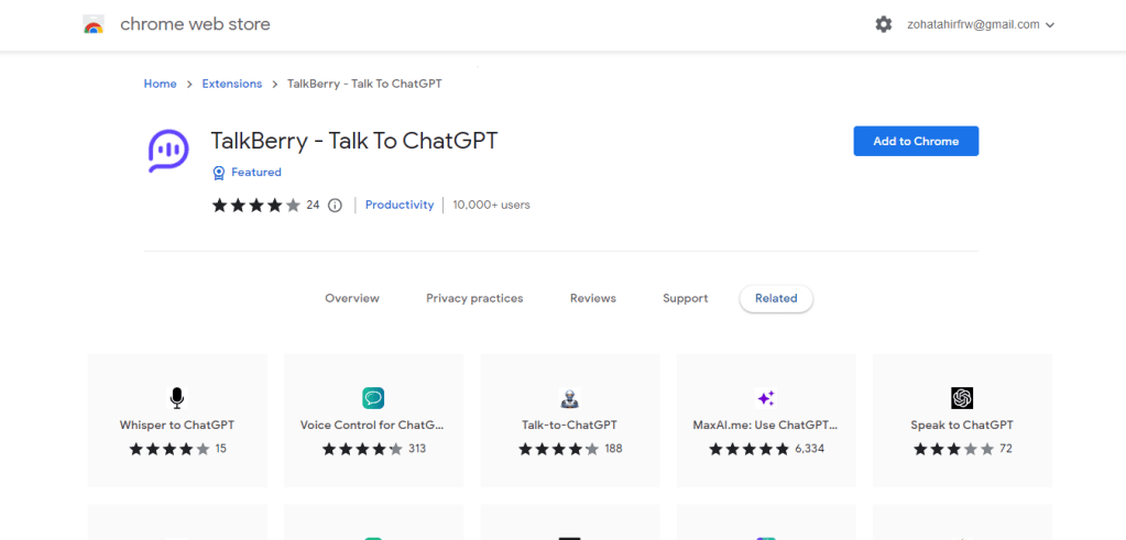 TalkBerry stands out as an invaluable Chrome extension for Chat GPT, simplifying the interaction process to its core. With just a headset equipped with a microphone, users can effortlessly verbalize their prompts, and this Chrome extension for Chat GPT will swiftly transcribe their words into text. The utility of TalkBerry extends far beyond convenience, making it an indispensable tool for language learners. It readily transforms into a reliable language tutor, guiding users through pronunciation nuances and helping them grasp new languages with confidence. Whether you’re seeking seamless typing assistance or embarking on a language-learning journey, TalkBerry emerges as your trusted companion, simplifying tasks and expanding your linguistic horizons effortlessly.
