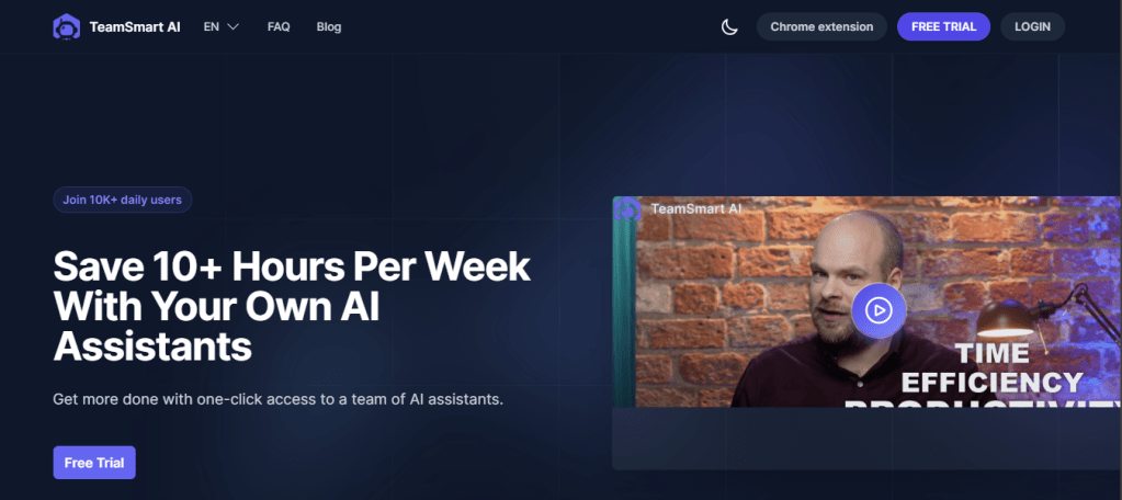 TeamSmart AI, a versatile Chrome extension for Chat GPT, is your multifaceted digital companion, ready to enhance various aspects of your life. This remarkable extension boasts a cadre of AI agents, each specializing in different domains. Meet Mark, one of the proficient agents within this Chrome extension for Chat GPT, designed to assist you with queries and prompt-based tasks efficiently. For those moments when human advice is indispensable, Rose steps in as another AI agent, providing invaluable guidance across a spectrum of life’s challenges. What sets TeamSmart AI apart is its reputation for swift and precise responses, making it your go-to choice for rapid, accurate AI assistance. Elevate your digital experience with TeamSmart AI, your dependable partner in navigating the complexities of modern life.