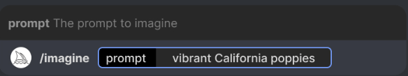 /imaginecommand from the list of available slash commands that pop up when you type ‘/’. - Type a description of the image you want to create in the